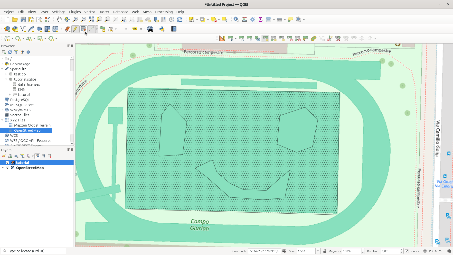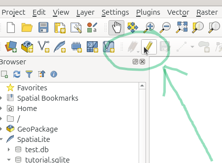 In the layer panel, select the project layer created previously and then press on the pencil icon in the toolbar