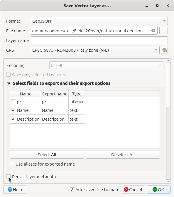 - De-select “Persist Layer Metadata”